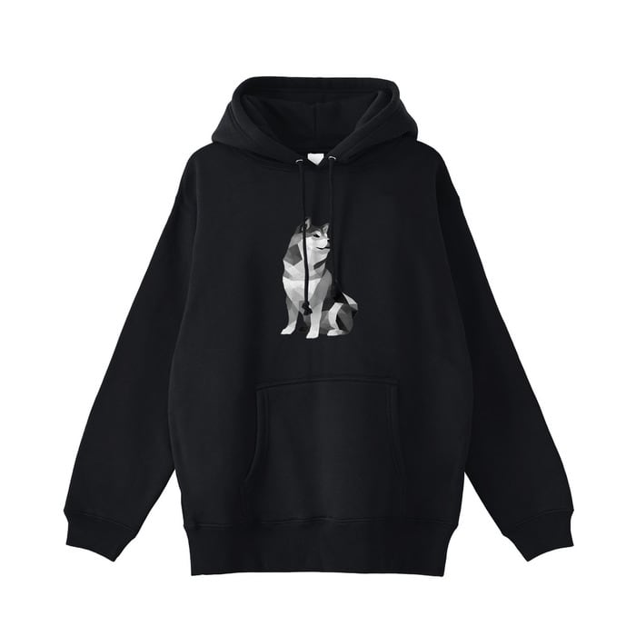 柴犬 幾何学 センタープリント 裏起毛パーカー ブラック