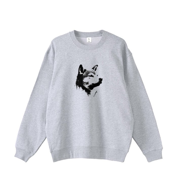 柴犬 モノクロストリートアート スタンダードパイルスウェット グレー