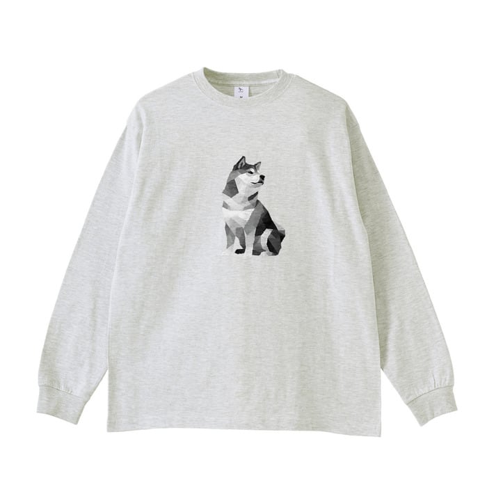 柴犬 幾何学 センタープリント スタンダード ロンT アッシュ