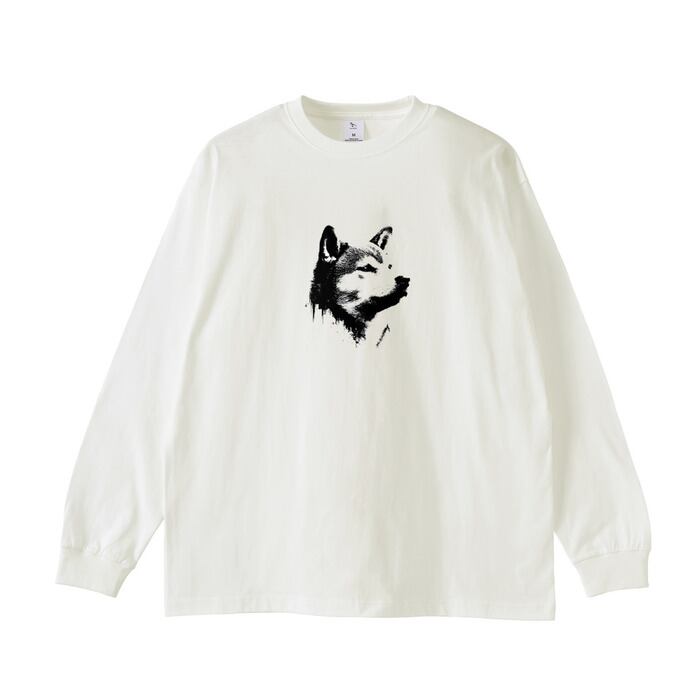 柴犬 モノクロストリートアート スタンダード ロンT ホワイト