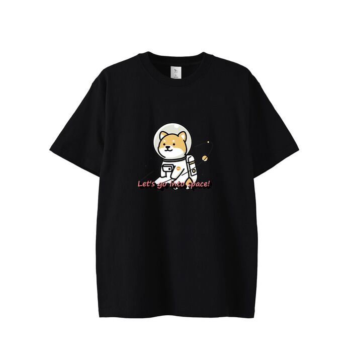 宇宙服を着用した柴犬をフロントセンターにプリント。