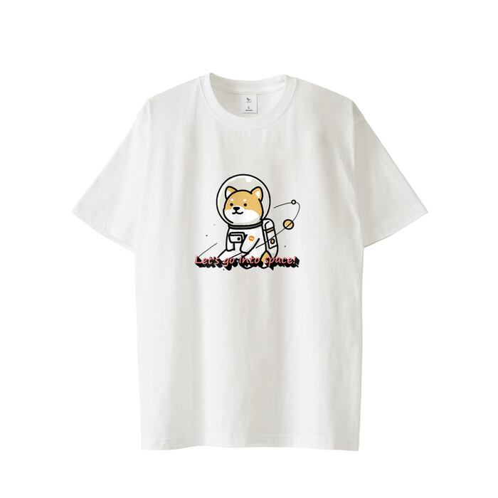 宇宙服を着用した柴犬をフロントセンターにプリント。